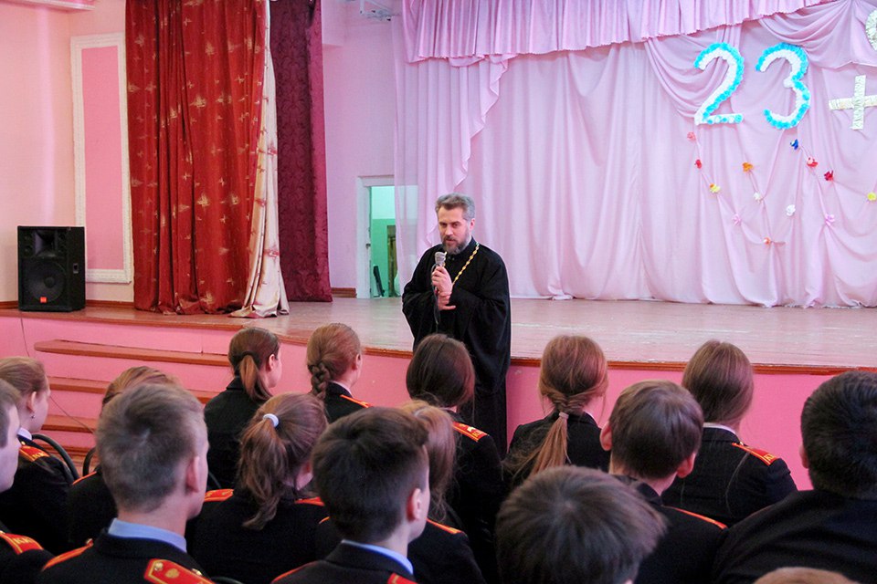 10 марта в МБОУ СШ №12, в рамках реализация плана воспитательной работы состоялась встреча Протоиерея Олега Куря с кадетами.